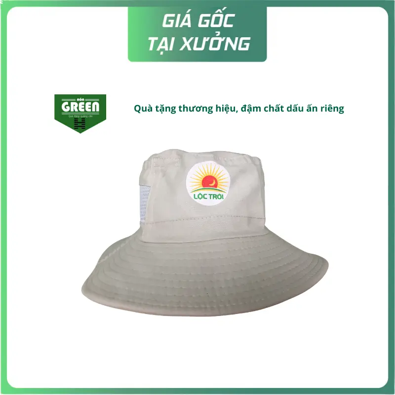 Chiếc nón tai bèo tone kem nhã nhặn được in logo “Lộc Trời” — biểu tượng của sự phát triển nông nghiệp bền vững tại Việt Nam — tạo nên sản phẩm vừa thực dụng vừa giàu ý nghĩa thương hiệu. Với màu sắc sáng và thiết kế thanh lịch, đây là lựa chọn lý tưởng để quảng bá, làm quà tặng hoặc đồng phục thể hiện sự tinh tế và chuyên nghiệp.